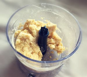 抓捏至黄油和低粉融合,呈大颗的粉粒状