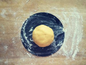 用手捏成团,揉好面团很光滑,不粘手也不粘盆,将揉好面团包上保鲜膜,放入冰箱冷藏40分钟