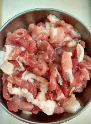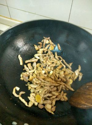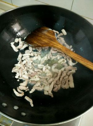 依次放入瘦肉,炒2分钟左右,放入酱油上色。