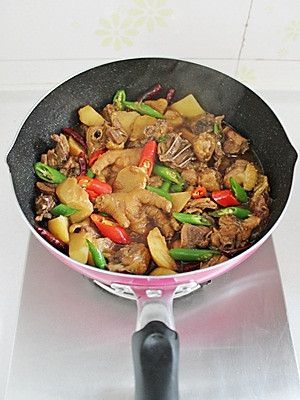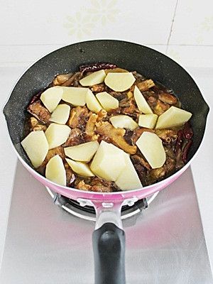 然后放入土豆块并加盐调味,继续炖煮15-20分钟左右至土豆软糯成熟。