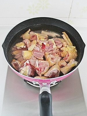 锅里加凉水,放入鸡块,大火烧开后转中火煮2-3分钟。