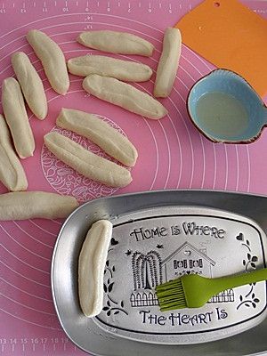 饧好的面团切成面剂子,揉成长条,然后然后刷上油摆放在盘里。