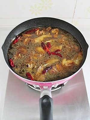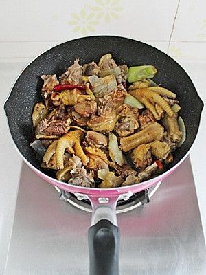 加入足量的水,大火晒开后转中火炖煮30-40分钟至鸡块8成熟。