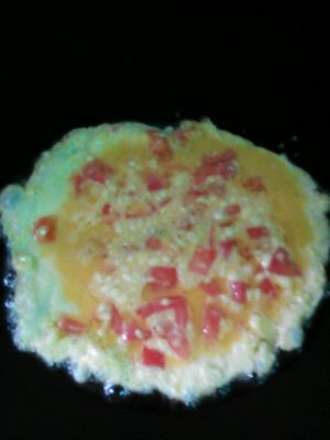 盛出西红柿,放油摊鸡蛋,鸡蛋熟了把西红柿倒进去翻炒20秒左右,装盘。