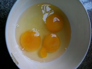 将鸡蛋打到盆中