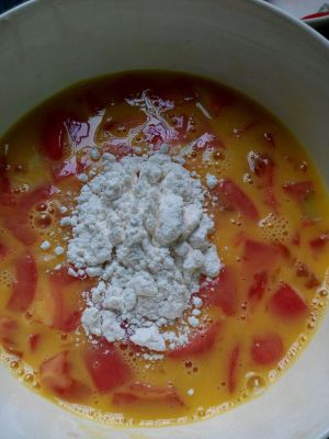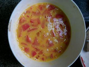 将切好的西红柿与鸡蛋混合均匀