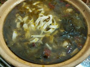 酸菜鱼吃到第二天还没有吃完,下午下班买了千张,加进去一起在砂锅里炖很好吃。