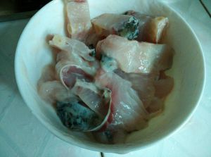 按料包上面的提示,把鱼切片洗干净后加上腌料包。