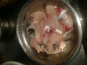 腌鱼片经过改良适合家庭版做。清洗鱼片,放盐放鸡精胡椒粉去抓不要用力抓,感觉鱼片比较滑了就放生粉再抓。