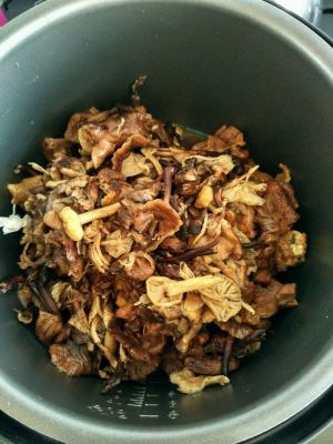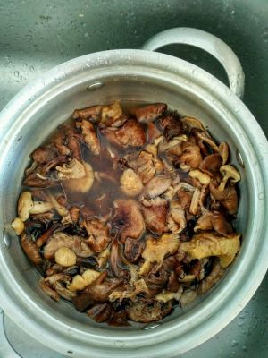 将榛蘑、香菇用清水泡发,反复清洗干净;