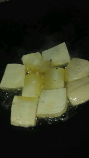锅里留底油,放入些许姜丝爆香后,放入豆腐块,加入老抽,生抽,蚝油,一点白糖,蚝油,小火炖个十来分钟,大火收汁……