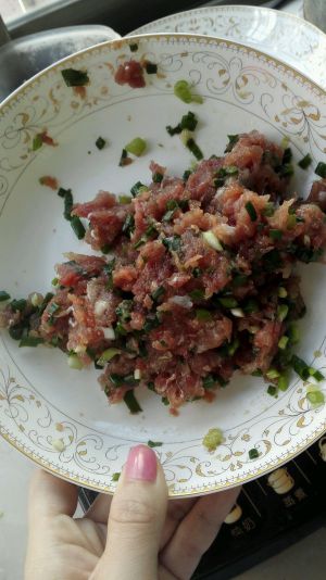肉和葱花剁剁剁搅一起~