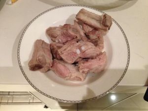 1,将排骨大火煮沸去沫,放入适量盐煮8分熟捞出备用