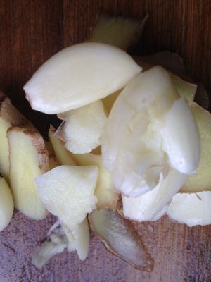 生姜切片,大蒜去皮。(ps:大蒜用刀拍扁再剥皮会更好剥噢)