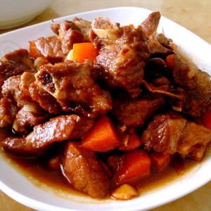 倒入糖醋汁,一碗排骨汤。煮开后小火炖二十分钟。期间可加入冰糖。