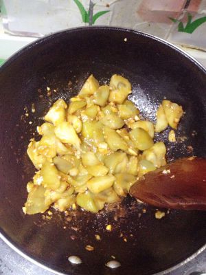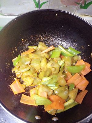倒入切好的辣椒,翻炒一下,然后放入适量鸡精或味精。盖上锅盖,煮沸即可出锅装盘