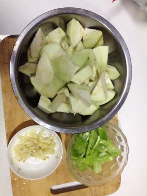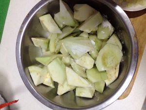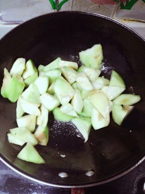 茄子用手掰开一小块一小块就可以,用刀切也可以(滚刀切)但很容易变黑,(由于茄子很容易氧化所以弄好茄子后要赶紧吵啦)