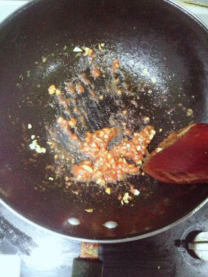 热锅倒入适量的油,倒入番茄沙司加入蒜末翻炒,然后倒入炸好的茄子翻炒几下,加入调好备用的汁,大火翻炒后加入青椒翻炒到青椒变软,盛盘