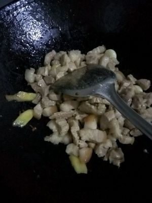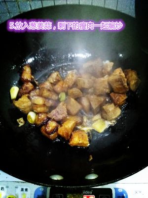 放入葱姜蒜,剩下的瘦肉一起煸炒