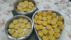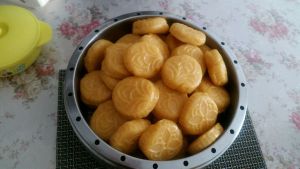 象做馒头样,揉一揉,揉成长条,再分成小块,放入模具成型,没有模具可直接做圆形即可