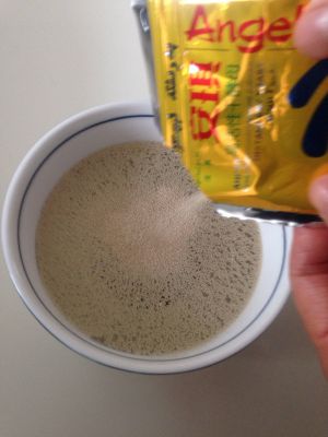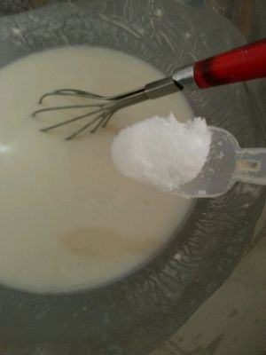 面糊加适量水搅拌均匀,稍微浓稠一点,加一小勺盐