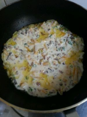 不粘锅倒入适量面糊中火煎至两面金黄色就可以了