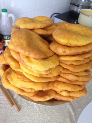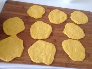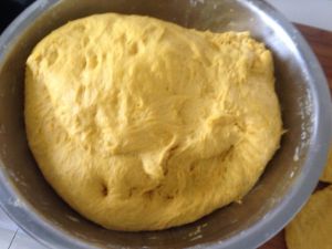 南瓜蒸熟捣碎掺糯米粉揉成面团