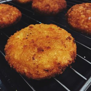 煎成金黄色,不要压得过扁,这次压得太用力了