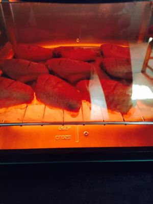 鸡翅一共烤制时间为40分钟:烤10分钟时候取出来给鸡翅两面刷上蜂蜜水(蜂蜜水:蜂蜜2:1水),继续放入烤箱烤20分钟时候再次给鸡翅刷上蜂蜜水,鸡翅翻一面烤10分钟