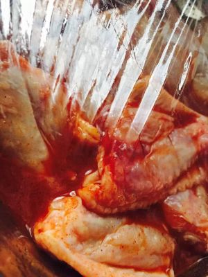 带上一次性手套将调料和鸡翅充分抓匀,这个步骤非常重要,一定要多点时间。