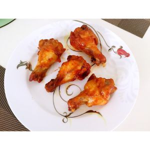 入光波炉,(微波炉也可以,用高火。)选择光波组合按三次,选择12分钟,大概八分钟左右,按暂停,将翅根翻身继续烤,直到时间结束。( 当然具体时间长短大家可以根据翅根大小调整,中途可以打开看看烤熟的程度再调整时间)