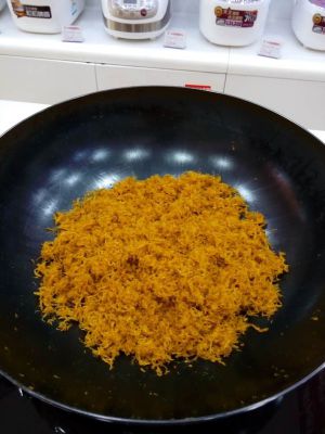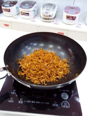 电磁炉600W,翻炒8分钟左右,加糖,盐,咖喱粉再炒2分钟。