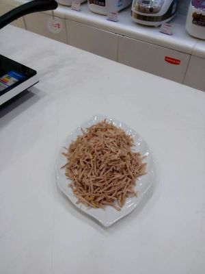 1小时后,肉松就做好了,(如果觉得肉松不够碎,可以再搅拌多10-20分钟)倒出肉松晾凉。