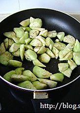 将茄子下锅煎熟,然后将土豆和青椒分别下锅煎一下,土豆不容易熟,可以先放微波炉里微波一下,再煎