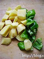 茄子,土豆,辣椒 洗净切滚刀块,茄子 土豆放入淀粉中滚匀备用