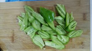 炸的土豆和茄子发黄,辣椒也过一下油。