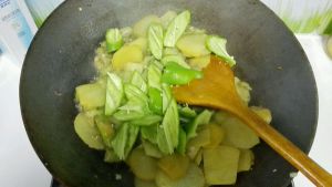放少许油,放花椒,蒜末爆锅放入菜煸炒。