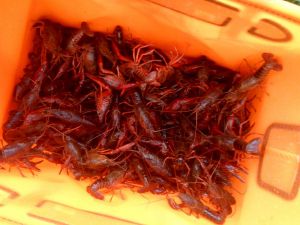 锅中倒入菜油烧开、再把小龙虾倒入进去翻炒变色(高温杀菌,我炒了差不多五分钟左右),小龙虾炒好盛起来备用。