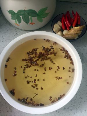 我把半瓶泡椒和汤倒入凉凉的调料水中