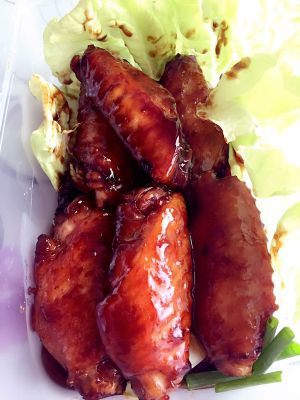 大火收汁,或者把鸡翅夹起来后再收汁也无妨。爱吃葱的可以放上葱点缀,甜甜的,很好下饭。
