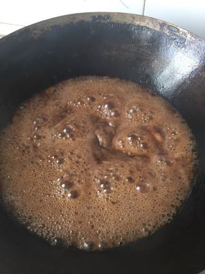 放可乐淹没过鸡翅,盖上锅盖小火慢煮到收汁即可