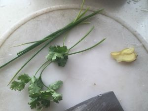 葱姜切大片,可乐倒在大碗里,放入微波炉加热2分钟。