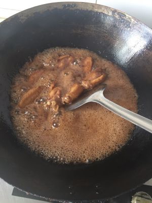 盖上锅盖炖鸡翅至熟透,期间要掀开锅盖翻面鸡翅,使鸡翅收汁均匀。