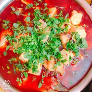加豆腐,盖好盖子炖10分钟(味道会更麻更辣)