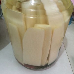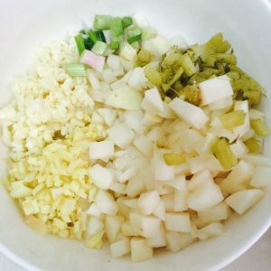 酸萝卜,姜,蒜,葱头,都切碎备用,因为朋友喜欢吃酸萝卜,所以我就切的比较大块,可以切更碎一些