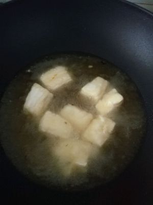 油热后把豆腐放入锅中,待双面炸至金黄色,捞出空油