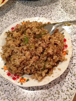 调个酱汁:酱油一勺,蚝油两勺,白糖适量,鸡精一小勺,加入一勺香辣酱,(图中这款哟)再加入适量水,和酱汁和差不多一碗就OK