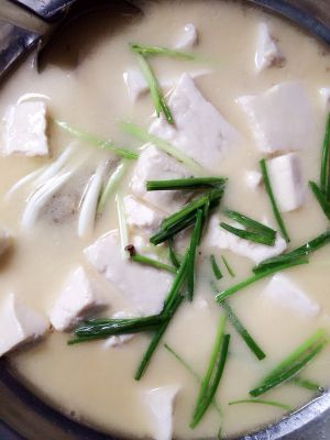 汤色已乳白,豆腐下锅,炖至汤色如牛奶白,大概15分钟到20分钟左右,