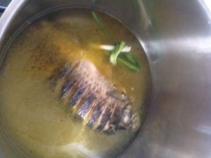 可以先把鱼用油煎一下在用水煮,我没有煎直接放水和姜片葱段,必须放开水效果才好 大火熬20来分钟~