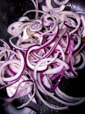 没用另外的葱蒜爆锅,直接炒的。炒洋葱要油多些才香,另外要小火,不然洋葱容易糊。